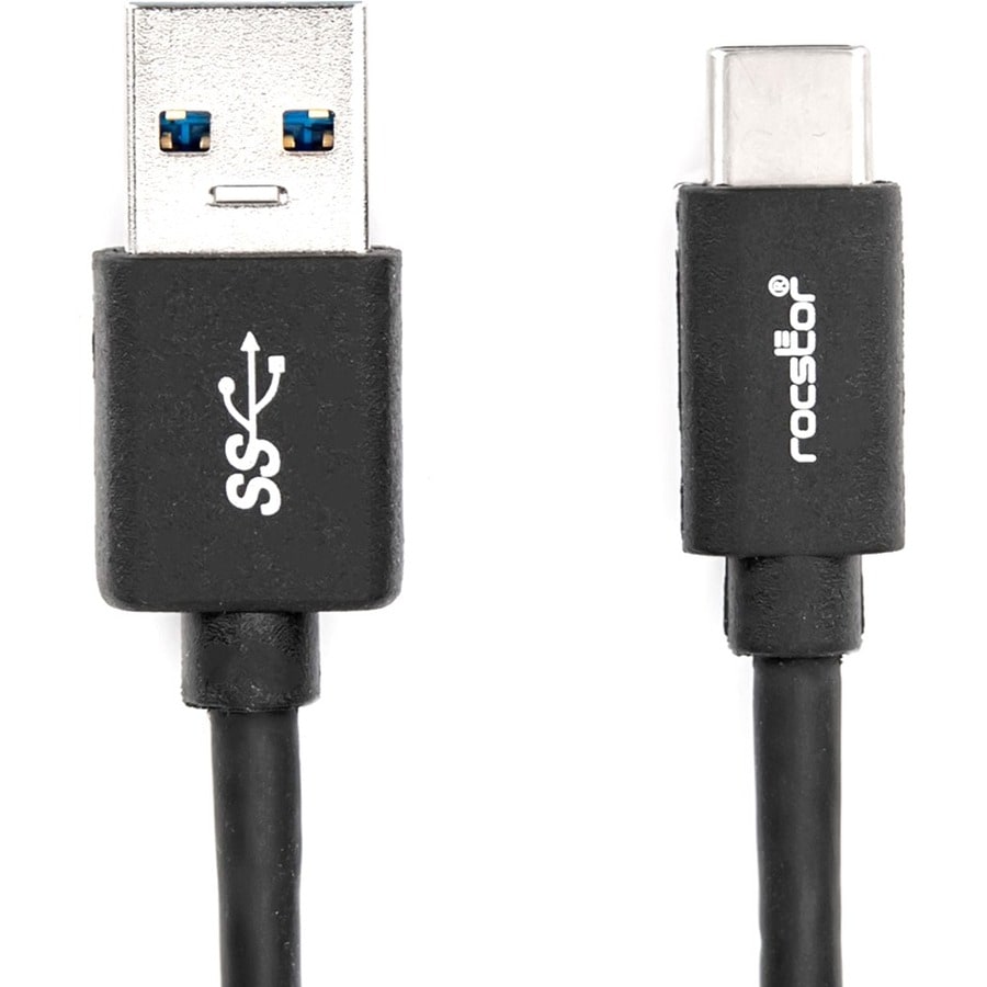 Rocstor Premium USB-C to USB-A Cable (3ft) - M/M - USB 3.0 - 3 ft USB Data Transfer Cable for Smartphone, Notebook, Tablet, Chromebook, Camera, Hard Drive, Cellular Phone - First End: 1 x USB 3.0 Type A - Male - Second End: 1 x USB 3.0 Type C - Male - Shielding - Nickel Plated Connector - Black