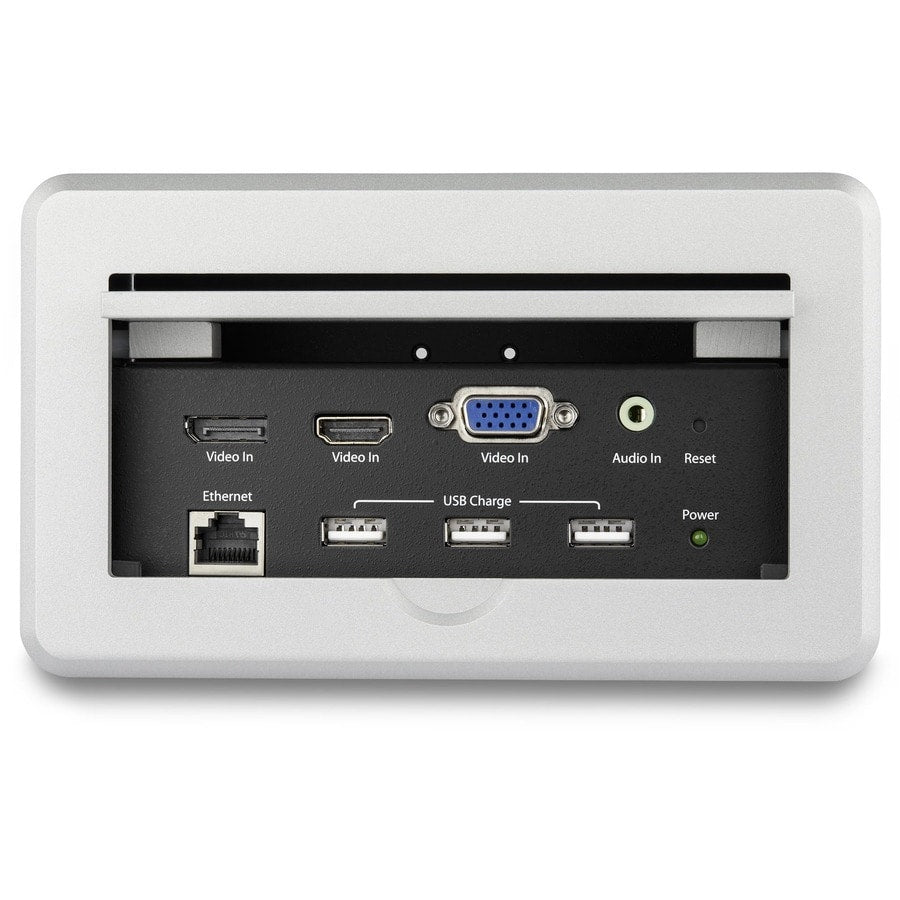 Add Style and Technological Sophistication to Any RoomThe boardroom interconnect box has an aluminum finish that complements your space. The hideaway panel eliminates clutter by discreetly covering the connection ports when they're not in use.