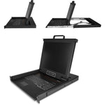 The 1U rackmount console features a built-in keyboard, a touchpad for intuitive control, and a 17-inch LCD display that supports resolutions up to 1280x1024.